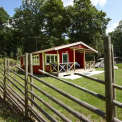 Auf Getnö Gård gibt es mehrere freistehende Ferienhäuser für Selbstversorger sowie einen großen Campingplatz, der wunderschön am Ufer des Sees Åsnen gelegen ist.