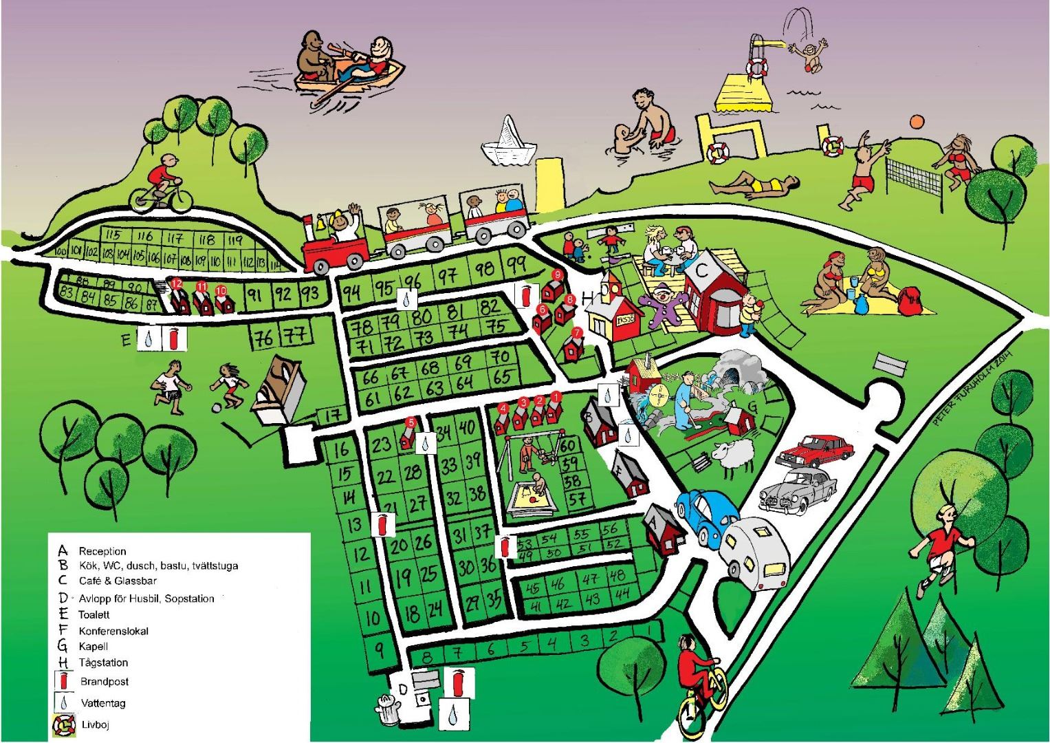 Eksjö Camping is located in the heart of the Småland Highland. It has a restaurant, course centre, rooms and cottages. Lots of exciting experiences throughout the summer. Daily excursions with our tourist mini train. The campsite has quiz rounds, cycle tours, “Timme Skoj” with the campsite clown, adventure golf, song and music programme on the terrace. We have something to suit all ages.