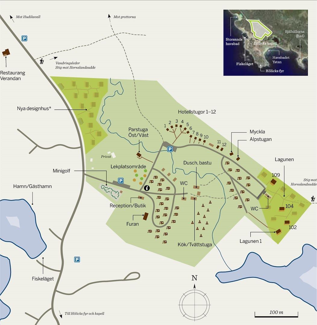 Hölick Havsresort is situated 300 kilometers north of Stockholm (approx. 2 hours with train from the airport of Stockholm) and 30 kilometer east of the picturesque town Hudiksvall in the Hälsingland county. The exit from the E4 is 3 kilometers north of Hudiksvall. Just follow the signs for Hornslandet/Hölick.