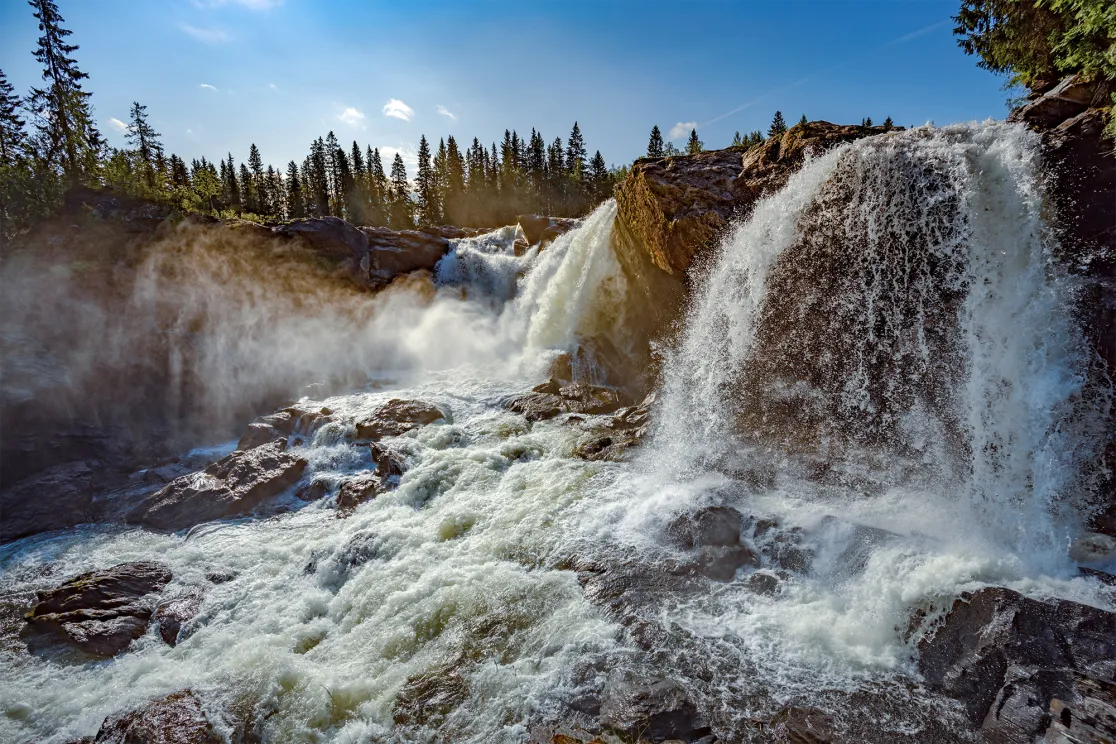 Naturen bjuder på många sevärdheter i Jämtland. Inte minst vattenfall. Känt från vita duken är Ristafallet, som dök upp i filmatiseringen av Ronja Rövardotter från 1984. Du kanske minns scenen där Birk och Ronja lyckas hålla sig fast i en björk och så småningom tar sig tillbaka till stranden. Ristafallet delas i två av en fridlyst ö, där det finns en grotta du kan besöka under vintern (när vattenfallet är fruset).