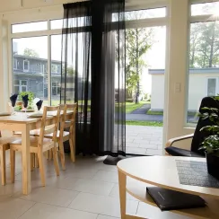 Bo bekvämt i en av Ringsjöstrands toppmoderna stugor, med utsikt över Ringsjön. 40 kvm med nordisk ljus design, fullt utrustat kök, vardagsrum, tv, badrum med toalett och dusch. Två separata sovrum.