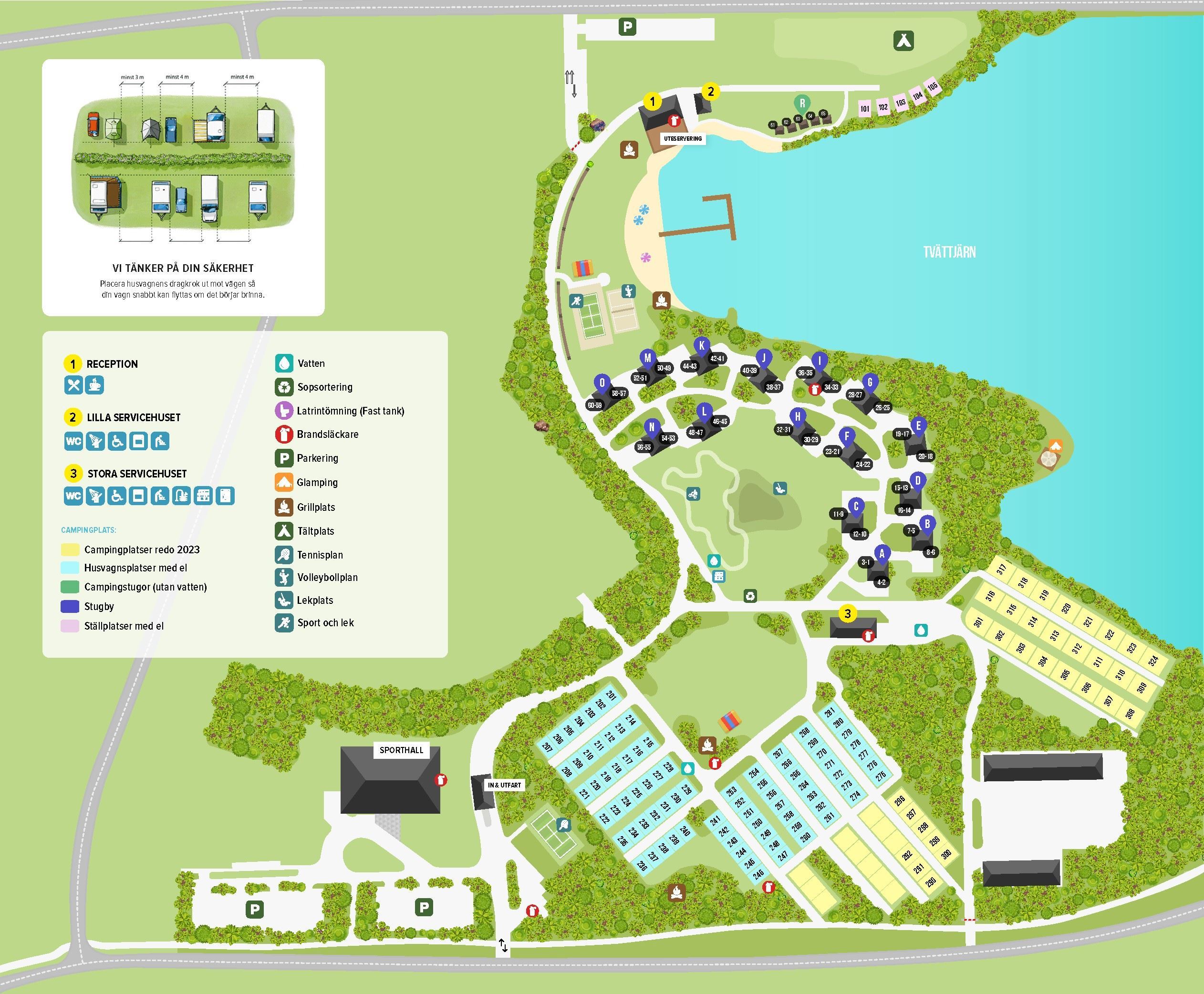 En gemytlig camping med plats för både husvagnar, stugor och tält.