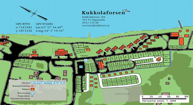 Logi finns i ett modernt hotell och även stuglägenheter samt mindre stugor, alla med utsikt över älven och längs stranden av forsen. Ett fint beläget campingområde med ett fräscht servicehus. Aktiviteter som forsränning, bastubad i Sveriges enda bastuby, skotersafari, sikhåvning och mycket mera.