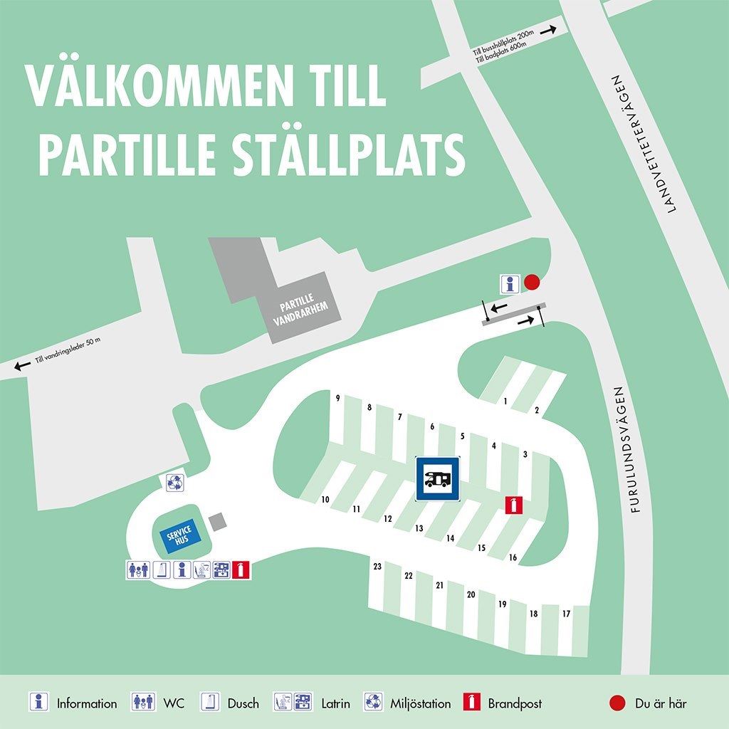 I det natursköna området intill Partille Vandrarhem – endast 13 km från centrala Göteborg hittar du dygnet-runt-öppna och året-runt-öppna Partille Ställplats med självbetjäning på 23 platser för husbil och husvagn.