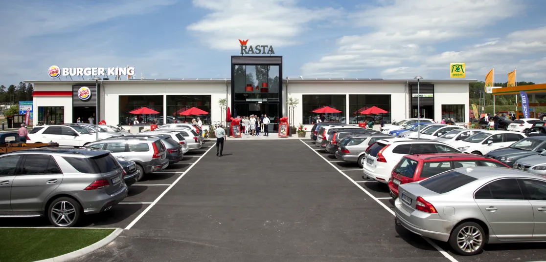 Hos Rasta kan du alltid räkna med god, hemlagad husmanskost, vegetariska rätter, nybryggt kaffe och dagsfärska bakverk. De har välsorterade servicebutiker och generösa öppettider. För barnfamiljer har de extra service med barnstolar, skötbord, lekvrå och Rastas barnmeny från 59 kr (inkl. dryck och glass).