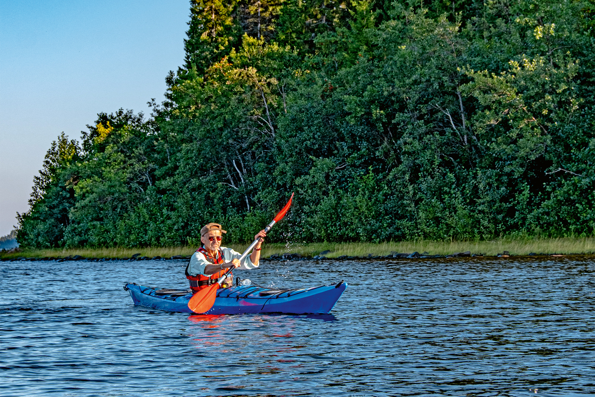 Själva inleder vi vistelsen med ett besök på Spafyren. Badanläggningen ligger vid stranden och passar perfekt efter en dag till häst. Skönt att få mjuka upp ömmande muskler i både ångbastu och hetvattenpool innan middagen på Strand Bistro, granne med badet. Tidigt nästa morgon söker vi oss längre ut i Piteå skärgård, till Renöhamn, där vi hyr kajak av Hansi Gelter, erfaren paddlare och naturguide. För det finns mycket att hämta för den som gillar att färdas på öppet hav. Arkipelagen består av närmare 600 öar, och många går även att nå med turbåt och sjötaxi.