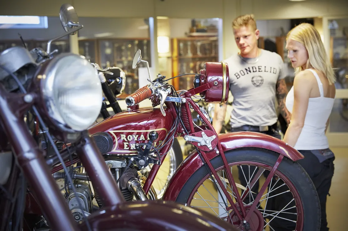 Ett besök på museet är en nostalgitripp för alla mc-fantaster, även för det här gänget som alla är kring 30. Stewes samlarstatus består av 14 motorcyklar i olika årgångar.